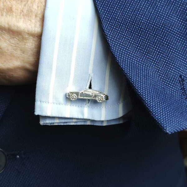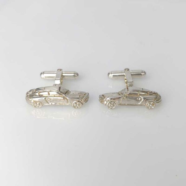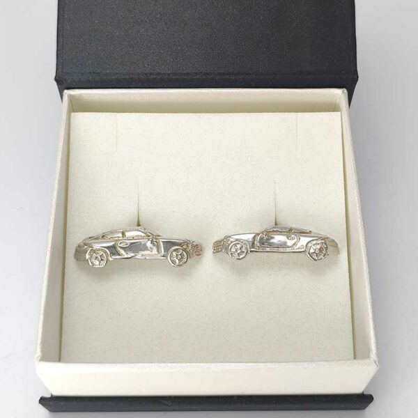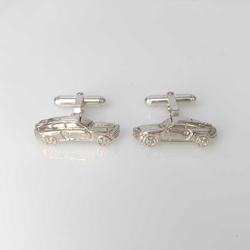 Venta de gemelos en plata con forma de coche deportivo, diseñados por Ramón Durán Joyero.