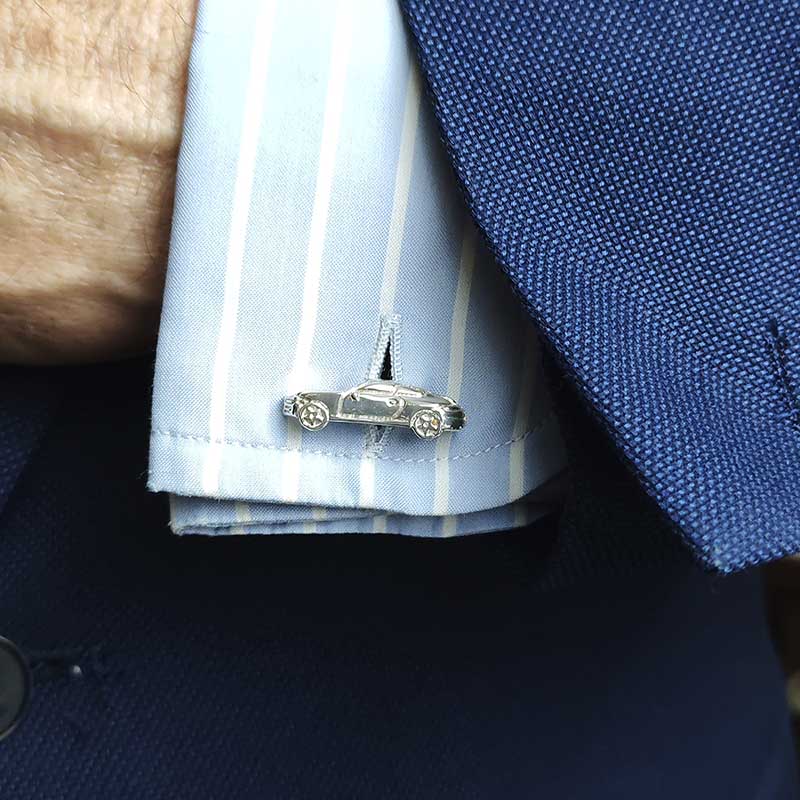 Venta de gemelos en plata con forma de coche de carreras, diseñados por Ramón Durán Joyero.